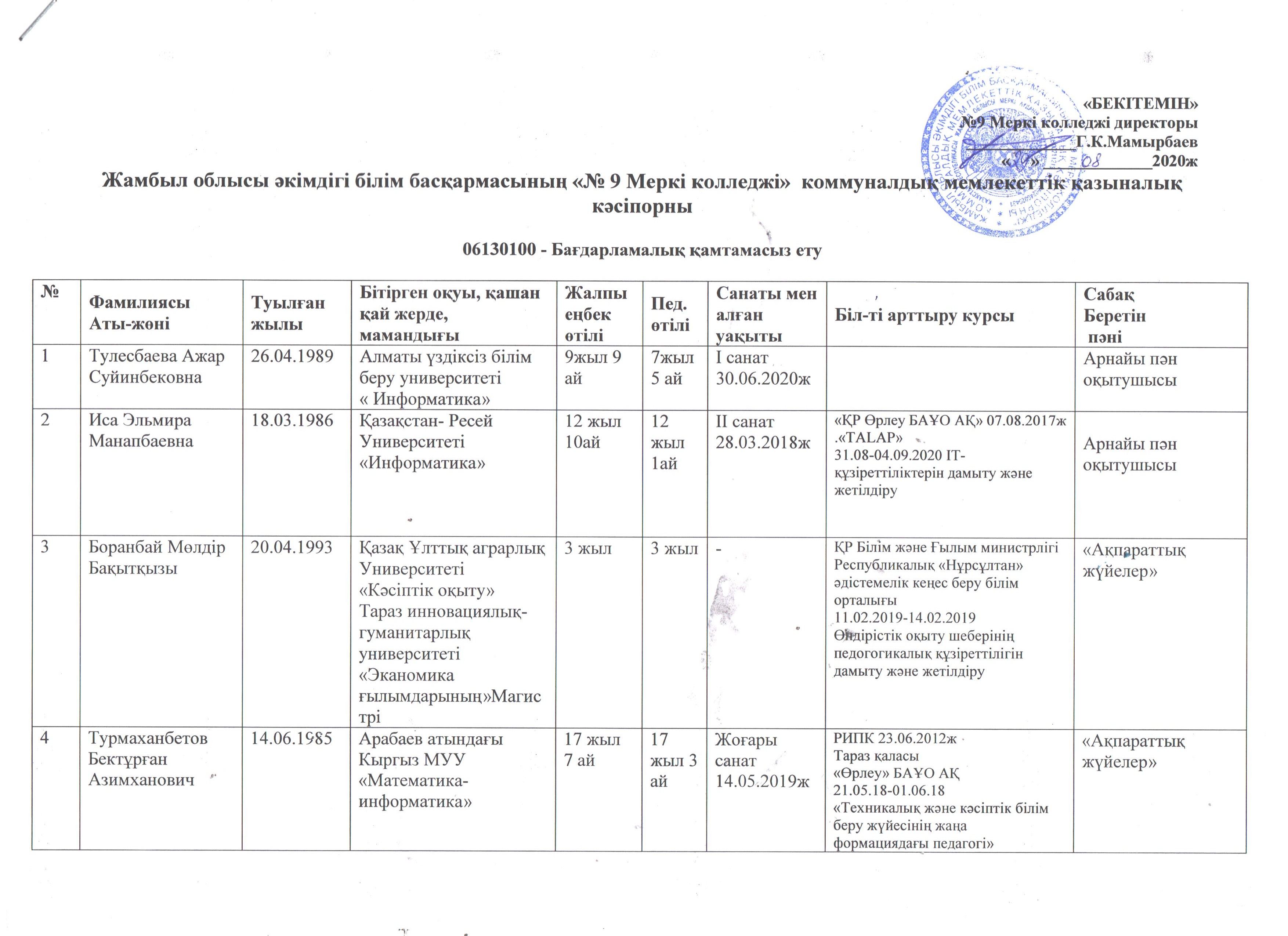 Колледжде оқытылатын мамандықтар